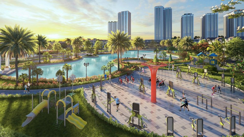 - Tiện ích: Công viên trung tâm, trường học liên cấp quốc tế, khu nghỉ dưỡng và chăm sóc sức khỏe 5 Sao, khu thể thao liên hợp, bể bơi bốn mùa, công viên Gym ngoài trời,…
