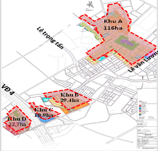 Khu đô thị Dương Nội có 4 phân khu chính trải trên đường Tố Hữu những không liền mạch